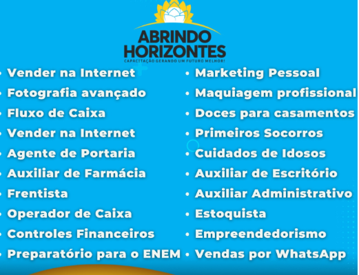 O Itapoã – DF, volta a ser contemplado com mais uma importante iniciativa de capacitação. O Projeto Abrindo Horizonte anunciou a abertura de uma nova etapa de cursos profissionalizantes gratuitos, todos com certificação garantida.