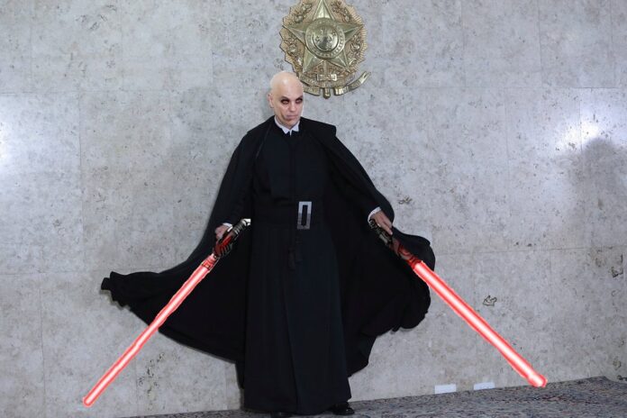O dono da rede social X, Elon Musk, publicou uma imagem gerada por inteligência artificial que ironiza o ministro do Supremo Tribunal Federal (STF), Alexandre de Moraes. A postagem, feita às 1h39, horário de Brasília, compara o ministro a vilões das franquias Star Wars e Harry Potter.
