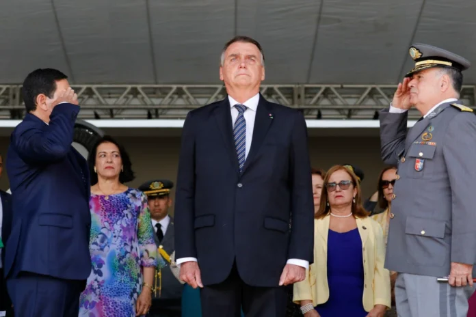 O comandante do Exército, general Marco Antônio Freire Gomes, se referiu ao Bolsonaro em seu discurso, citando o patriotismo e o culto à família por parte do presidente.