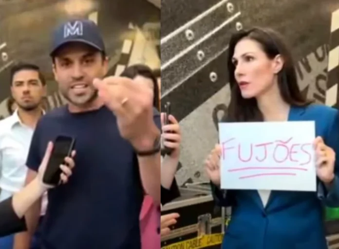 Marina Helena, por sua vez, chegou para o debate com uma folha de papel com a frase “fujões”.