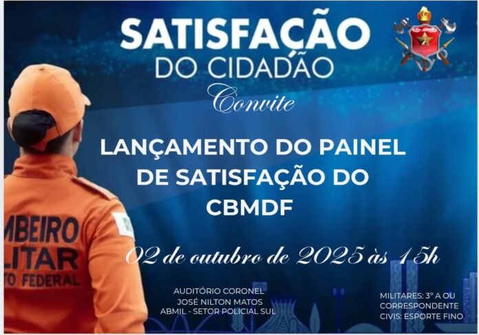 O Corpo de Bombeiros Militar do Distrito Federal (CBMDF) lança, no próximo dia 2 de outubro, às 15h, o Painel de Satisfação do Cidadão — uma plataforma interativa que torna pública a percepção da população sobre os serviços da corporação e orienta decisões internas com base em evidências.