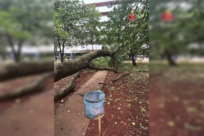 Segundo o Corpo de Bombeiros Militar (CBMDF), entre domingo (19/10) e segunda-feira (20/10), foram registradas mais de dez ocorrências relacionadas à queda ou risco de queda de árvores em diversas regiões do DF.
