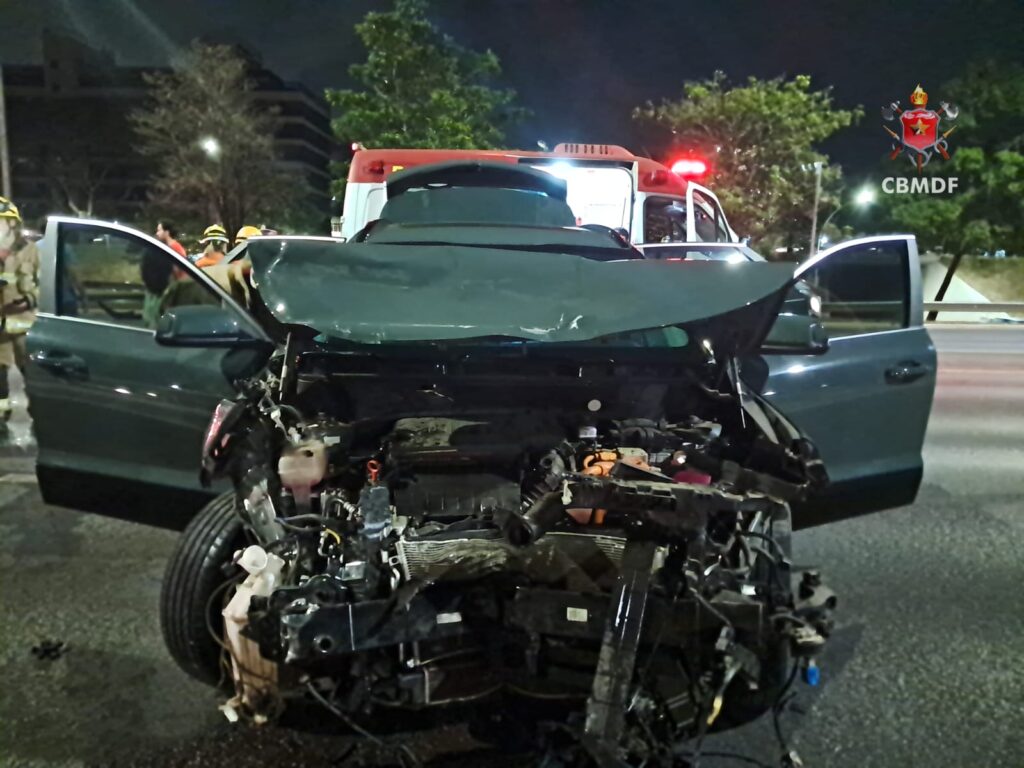 Na noite desta sexta-feira (17) o final do eixão norte teve que ser completamente interditado devido a uma colisão entre dois carros.