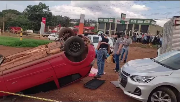 Goiânia – Uma situação inusitada assustou quem passava pela BR-060, km 381, no perímetro urbano do município de Rio Verde, no sudoeste goiano. Um veículo Ford Ka que seguia no sentido Rio Verde/Goiânia, capotou e com o impacto do acidente, os vidros foram quebrados.