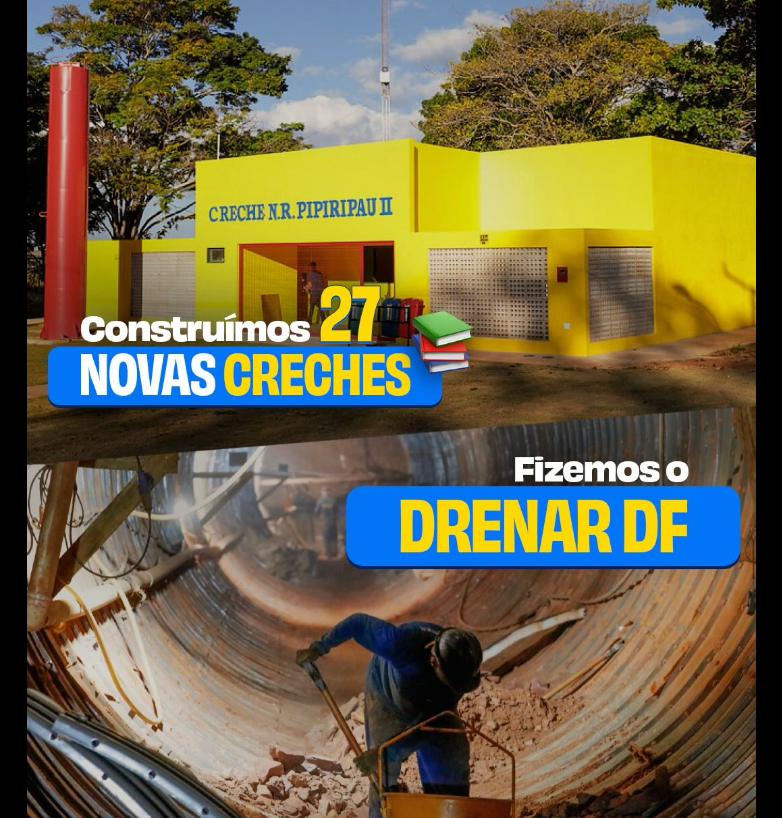 Entrega de 27 novas creches e execução do programa Drenar DF, voltado à melhoria do sistema de escoamento e prevenção de alagamentos.