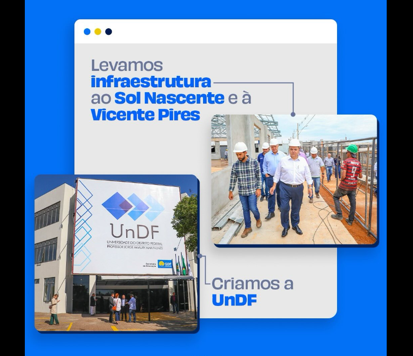 Investimentos em infraestrutura em regiões como Sol Nascente e Vicente Pires, além da criação da Universidade do Distrito Federal, ampliando o acesso ao ensino superior público.