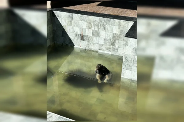 O Batalhão de Polícia Militar Ambiental (BPMA) na manhã desta sexta-feira (24/4), resgatou o Tamanduá na piscina de uma casa no Condomínio Privê, no Jardim Botânico.