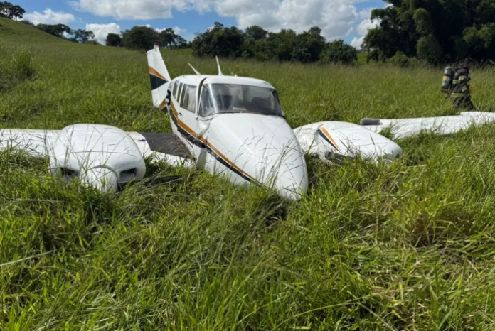 Vítimas foram resgatados por moradores de uma chácara que presenciaram a queda. Aeronave entrou em chamas após impacto com o solo
