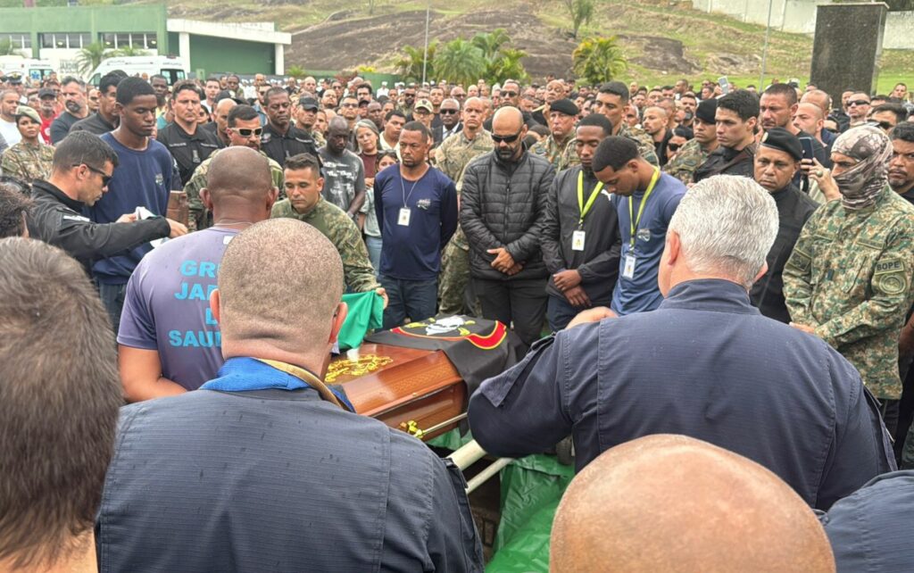 O sepultamento do sargento Heber Carvalho da Fonseca, de 39 anos, do Batalhão de Operações Policiais Especiais (Bope), foi marcado por forte comoção nesta quinta-feira (30) no Cemitério de Sulacap, na Zona Oeste do Rio de Janeiro. Heber foi um dos quatro policiais mortos durante a megaoperação contra o Comando Vermelho, realizada na última terça (28) nos complexos do Alemão e da Penha.