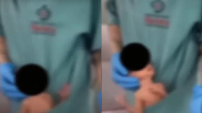 No vídeo, que circula pelas redes sociais, a fisioterapeuta aparece com o uniforme do Hospital e Maternidade Marieta Konder Bornhausen, onde o caso aconteceu, enquanto canta e dança uma música viral nas redes sociais com o recém-nascido dentro do bolso. Na gravação, é possível ouvir a profissional e quem a gravou rirem.