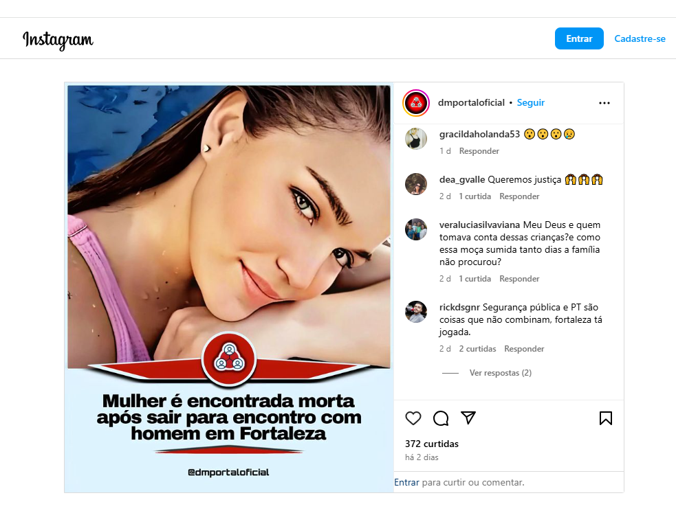 Mulher de 30 anos é encontrada morta em Fortaleza depois de sair em encontro com homem — Foto: Reprodução