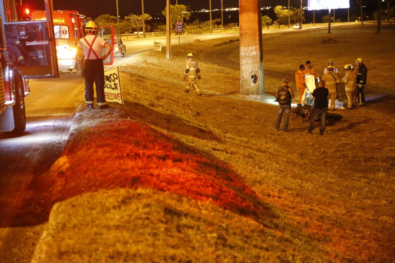 O acidente ocorreu quando um motociclista conduzia uma moto Harley Davidson, perdeu o controle e caiu no balão de ligação a ponte JK.