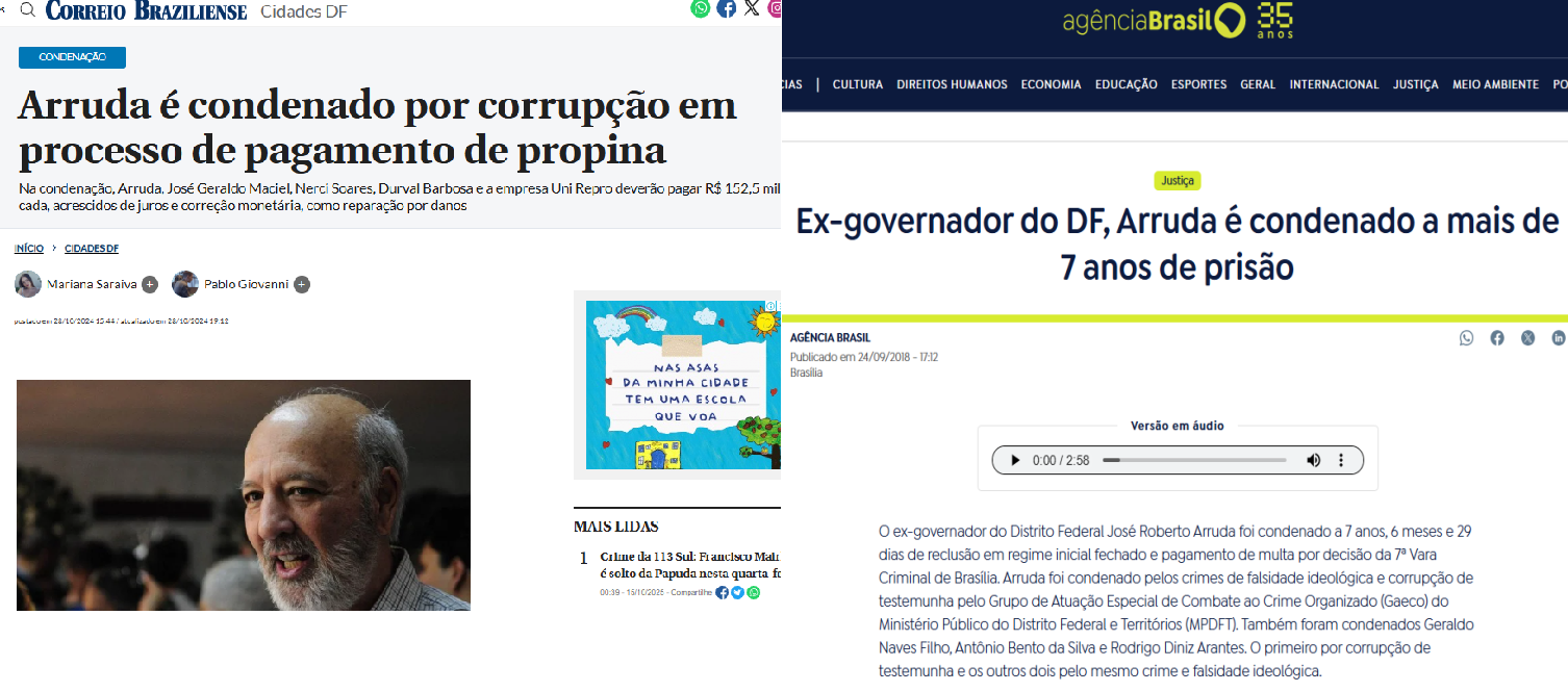 Parece que Arruda esqueceu dos fatos amplamente divulgados conforme prints acima.
