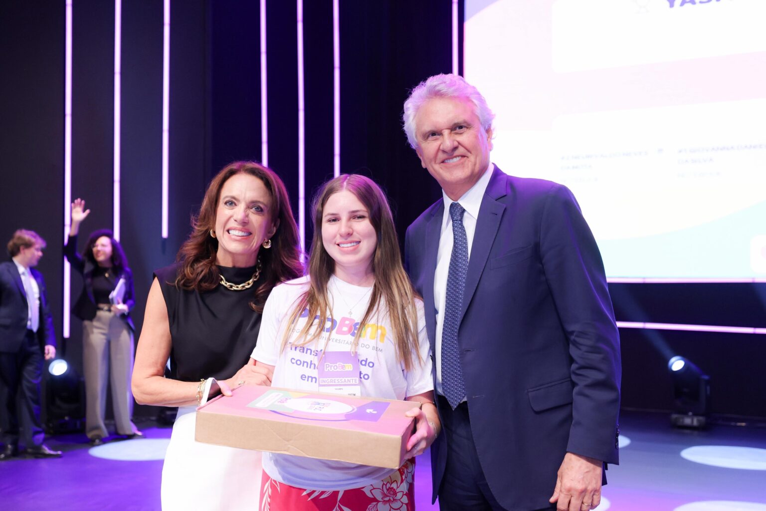 Antes da cerimônia de inclusão dos bolsistas, Caiado e Gracinha caminharam pela Feira de Oportunidades, uma ação inédita voltada para universitários contemplados pelo ProBem. O evento oferece oportunidades para complementar formação, preparar para o mercado de trabalho e fortalecer o protagonismo juvenil.