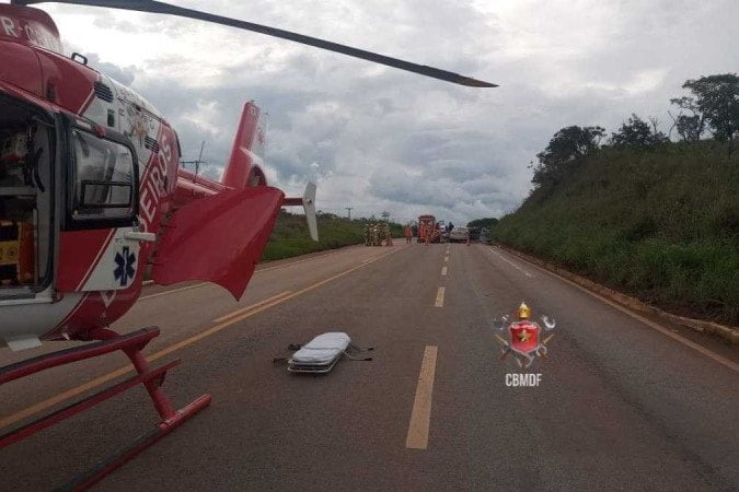 O Corpo de Bombeiro Militar do DF (CMB-DF) foi acionado às 16h48 e precisou do helicóptero para o resgate.