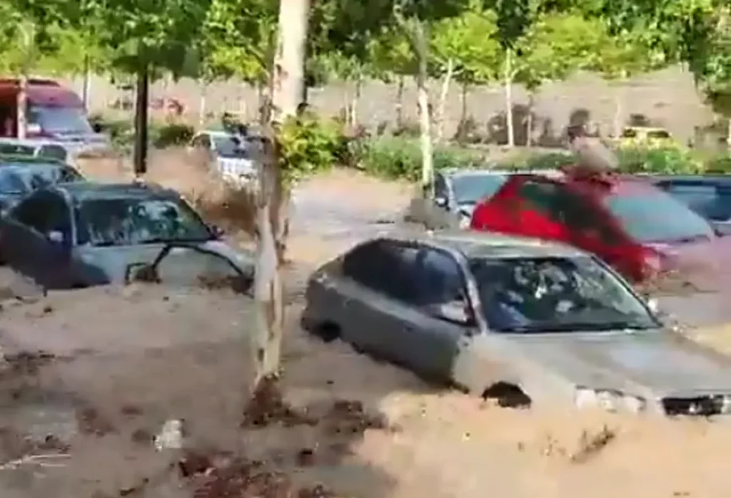 Vídeos mostram força da água após chuva na última quinta-feira (6) em Aragão. Na capital, Saragoça, carros foram arrastados e pessoas ficaram ilhadas. O nível da água subiu em apenas 15 minutos após chuva torrencial. Comércios, casas e ruas ficaram completamente alagados. Segundo autoridades, não há registros de feridos.