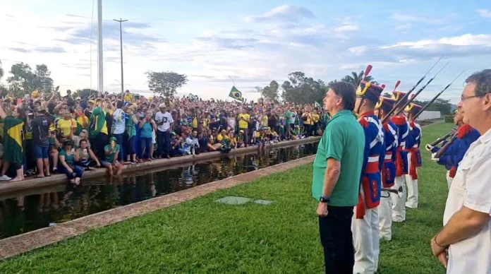 Neste domingo (11), o presidente Jair Bolsonaro (PL) cumprimentou apoiadores, no Palácio do Alvorada. O momento foi transmitido no perfil dele no Facebook.
