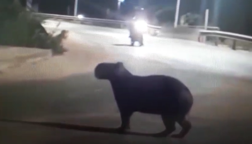 Vídeo: Cuidado motoristas! Capivara é avistada andando próximo a pista